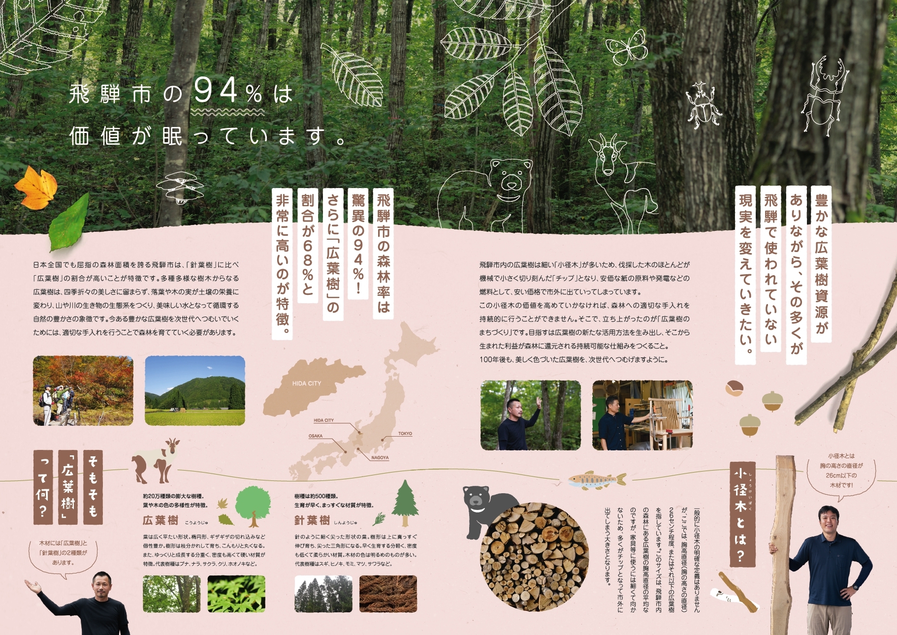 岐阜県飛騨市が2014年から熱心に取り組む「広葉樹のまちづくり」事業「飛騨の森を君とつむぐ」のブランド作りのお手伝いさせていただきました。