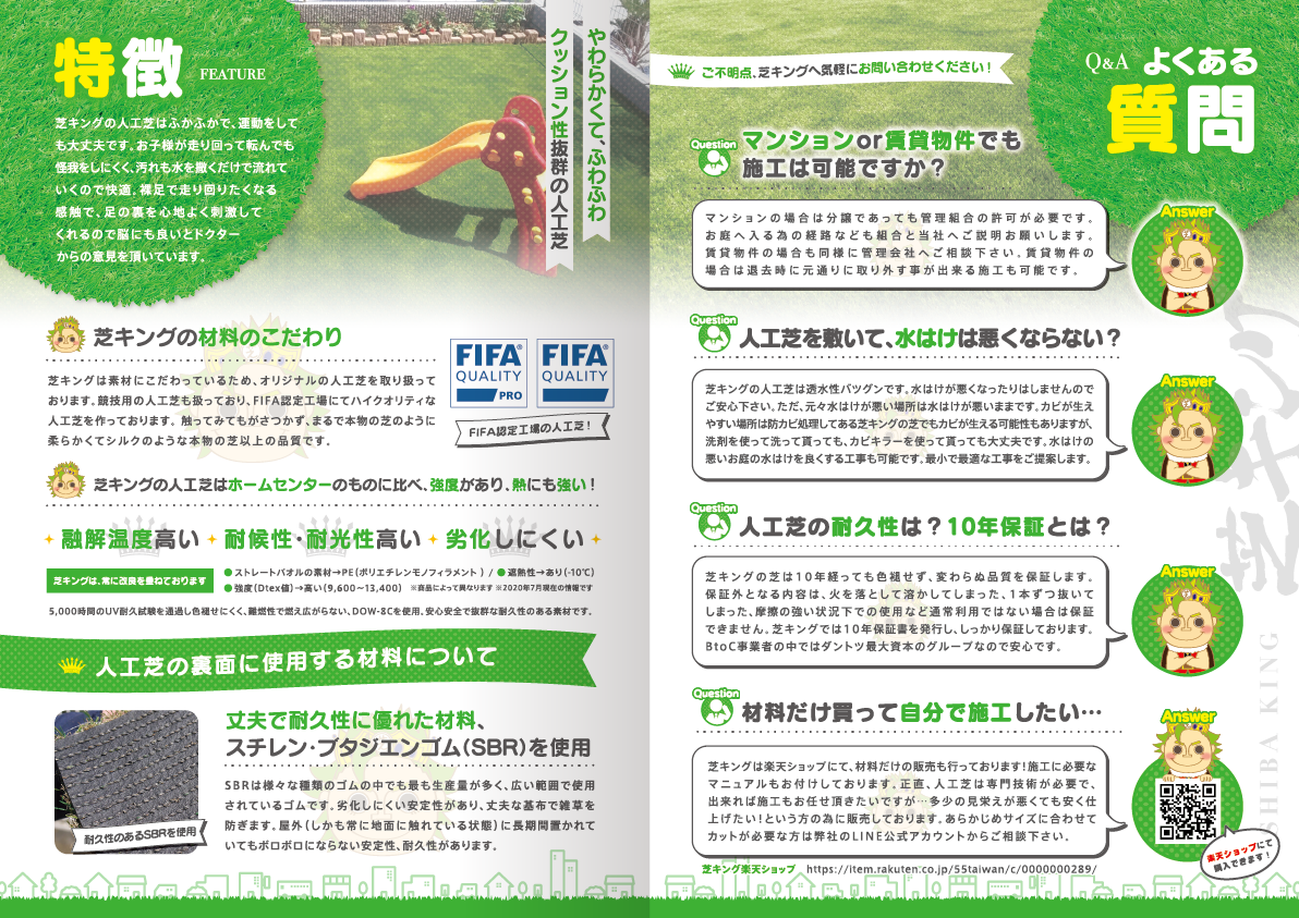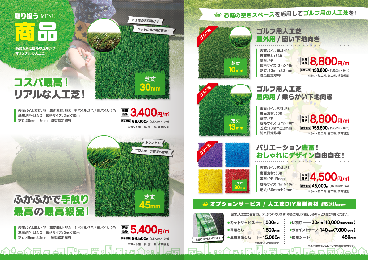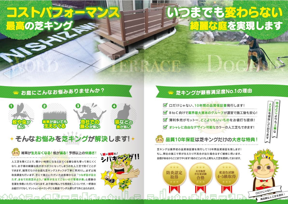 表紙を開いたページはお客様の悩み解決に人工芝が役立つということから入り、