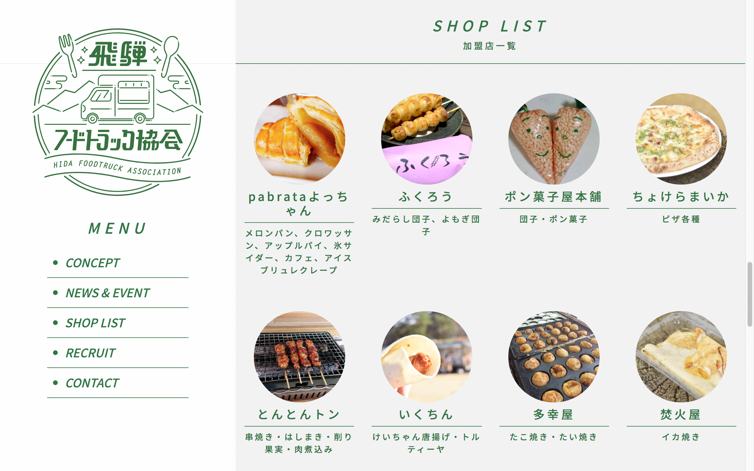 飛騨地方のキッチンカー事業者が集う団体「飛騨フードトラック協会」様のホームページを制作いたしました。