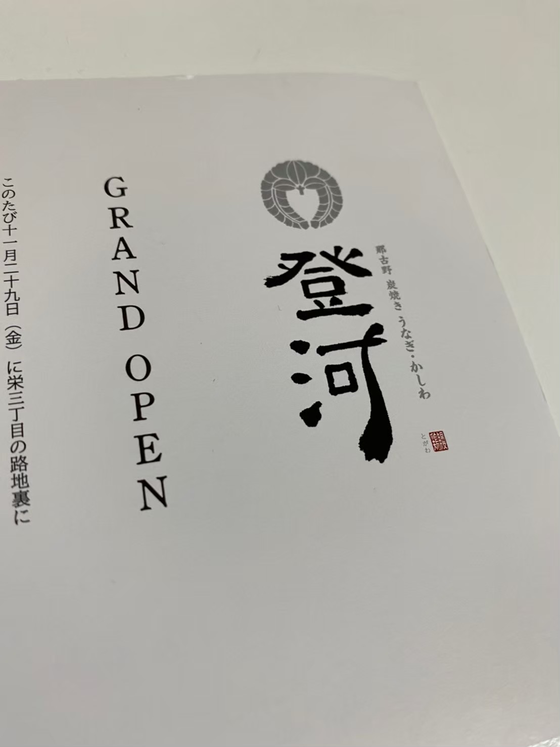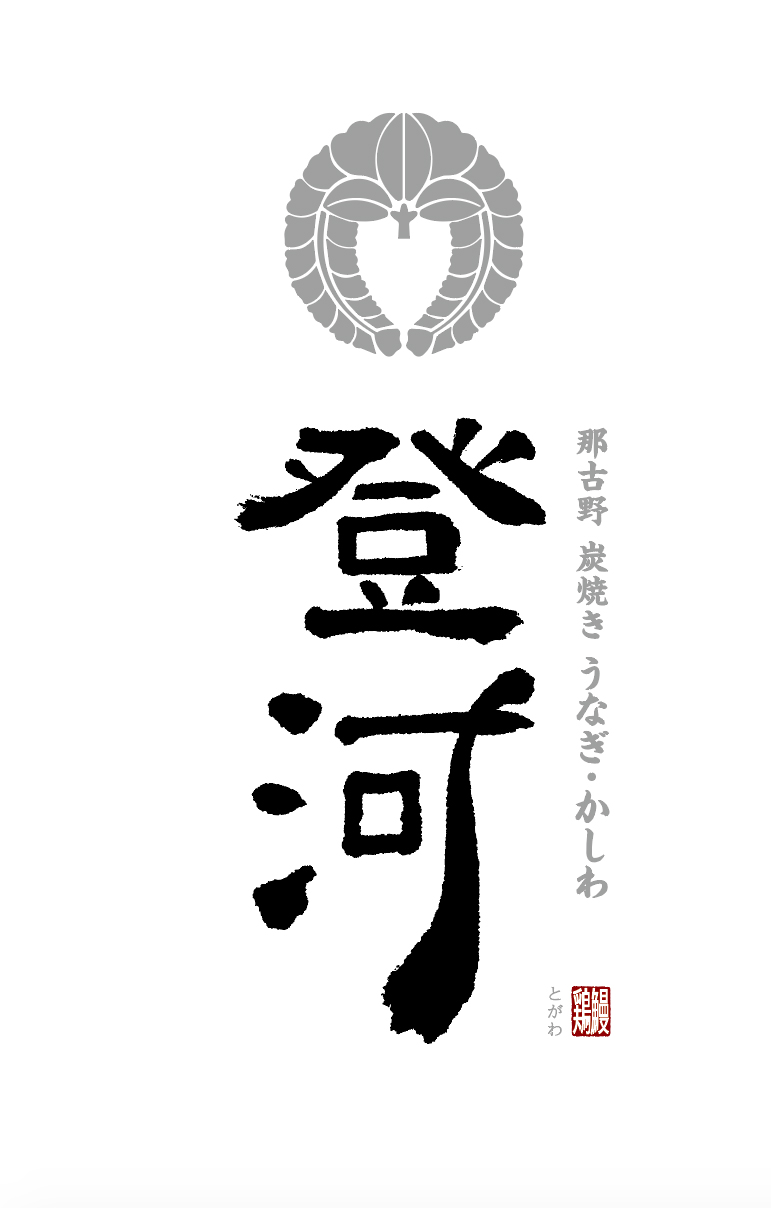 名古屋は栄にオープンした鰻と鶏のお店 「那古野炭焼きうなぎ・かしわ 登河」様の ロゴデザインを制作させていただきました。