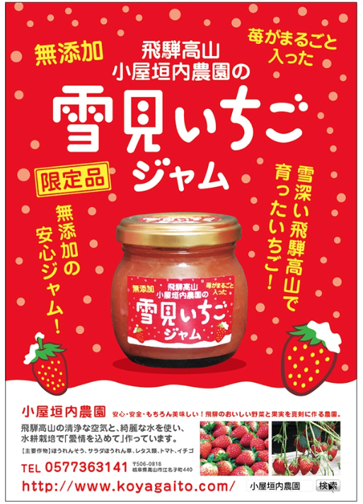 無添加のおいしいいちごで作った 「雪見いちご ジャム」のパッケージデザインデザイン