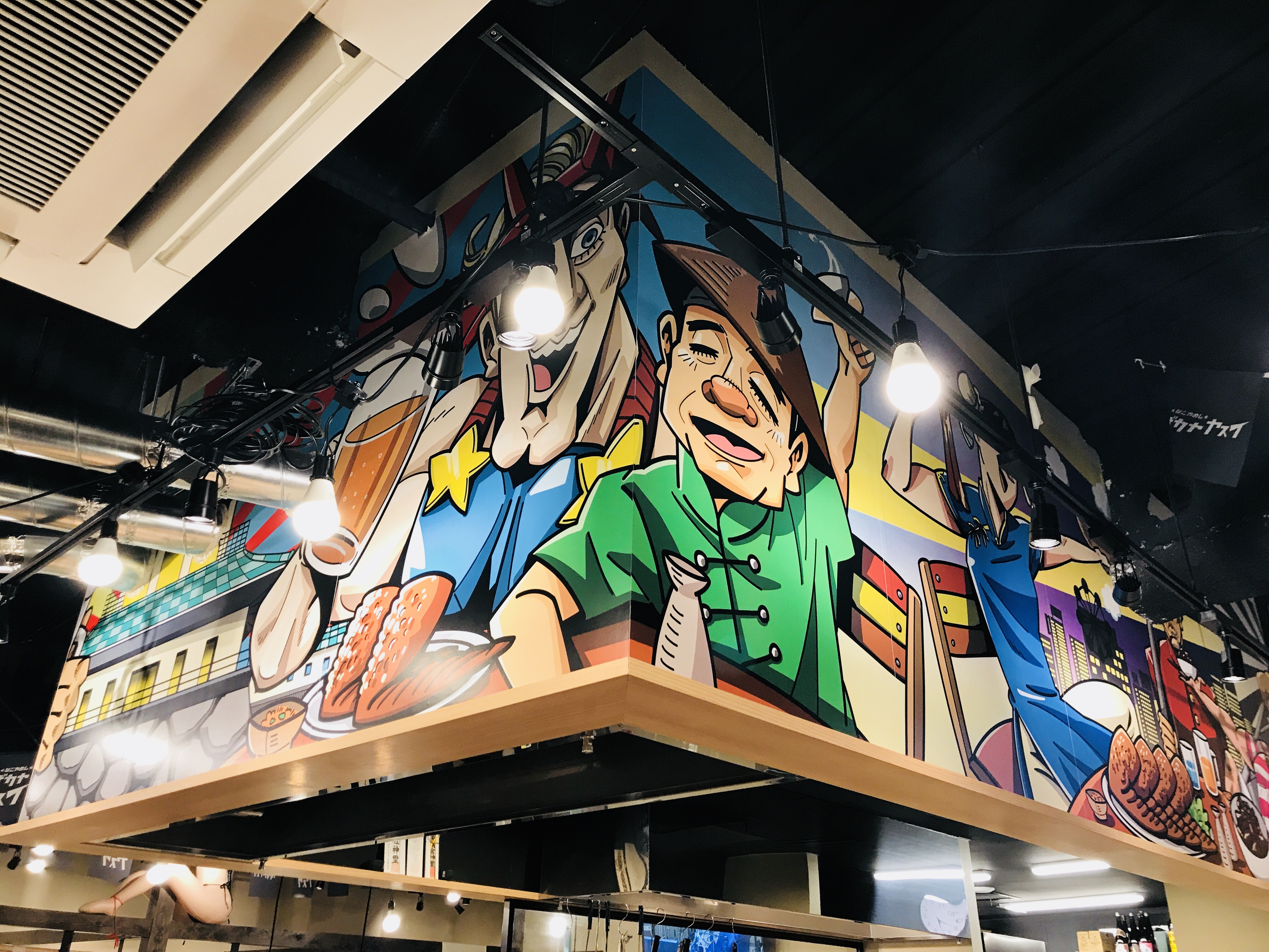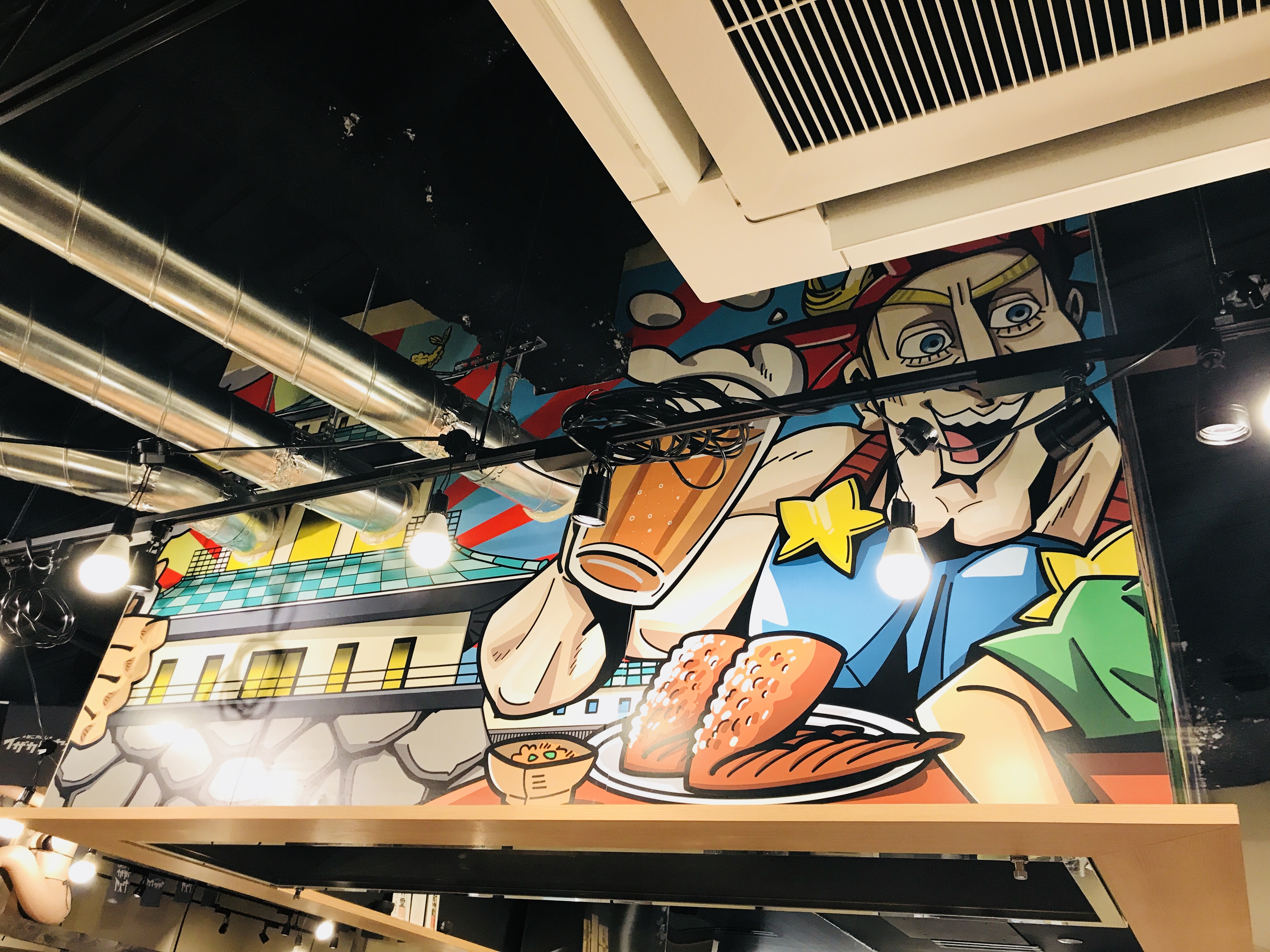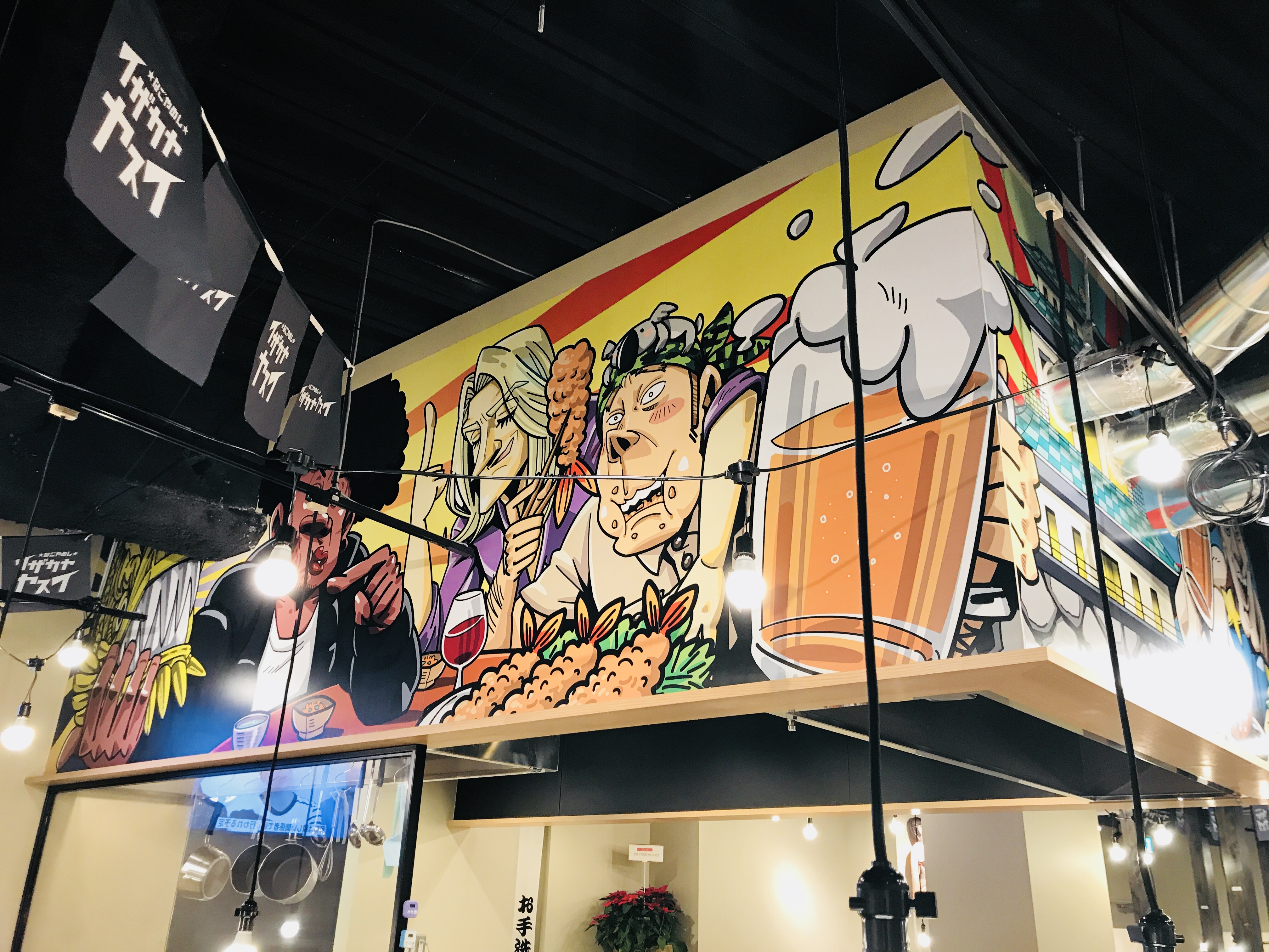 名古屋で生まれた人情居酒屋 「やぶやグループ」の新店舗 イザカヤヤスイ名駅本店の 店内壁画デザイン 各国の人種がビール片手に 名古屋めしで仲良くなるイメージで 制作しました。 「イザカヤヤスイ名駅本店」 愛知県名古屋市西区名駅3-10-15 〒451-0045 愛知県名古屋市西区名駅3-10-15