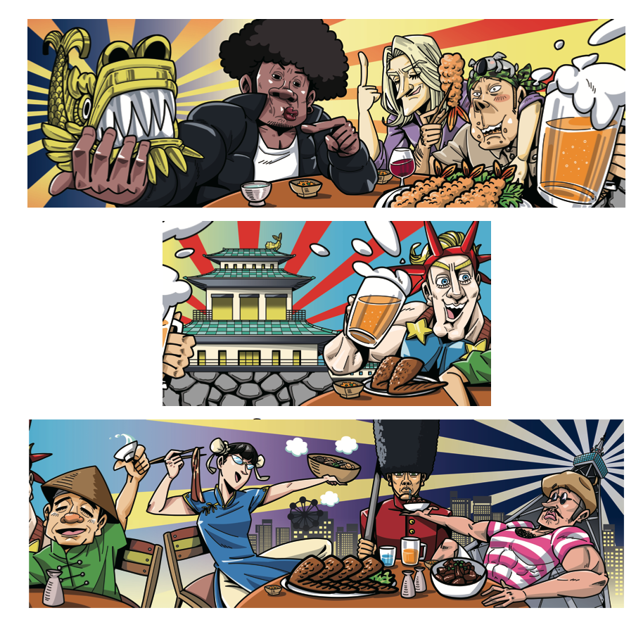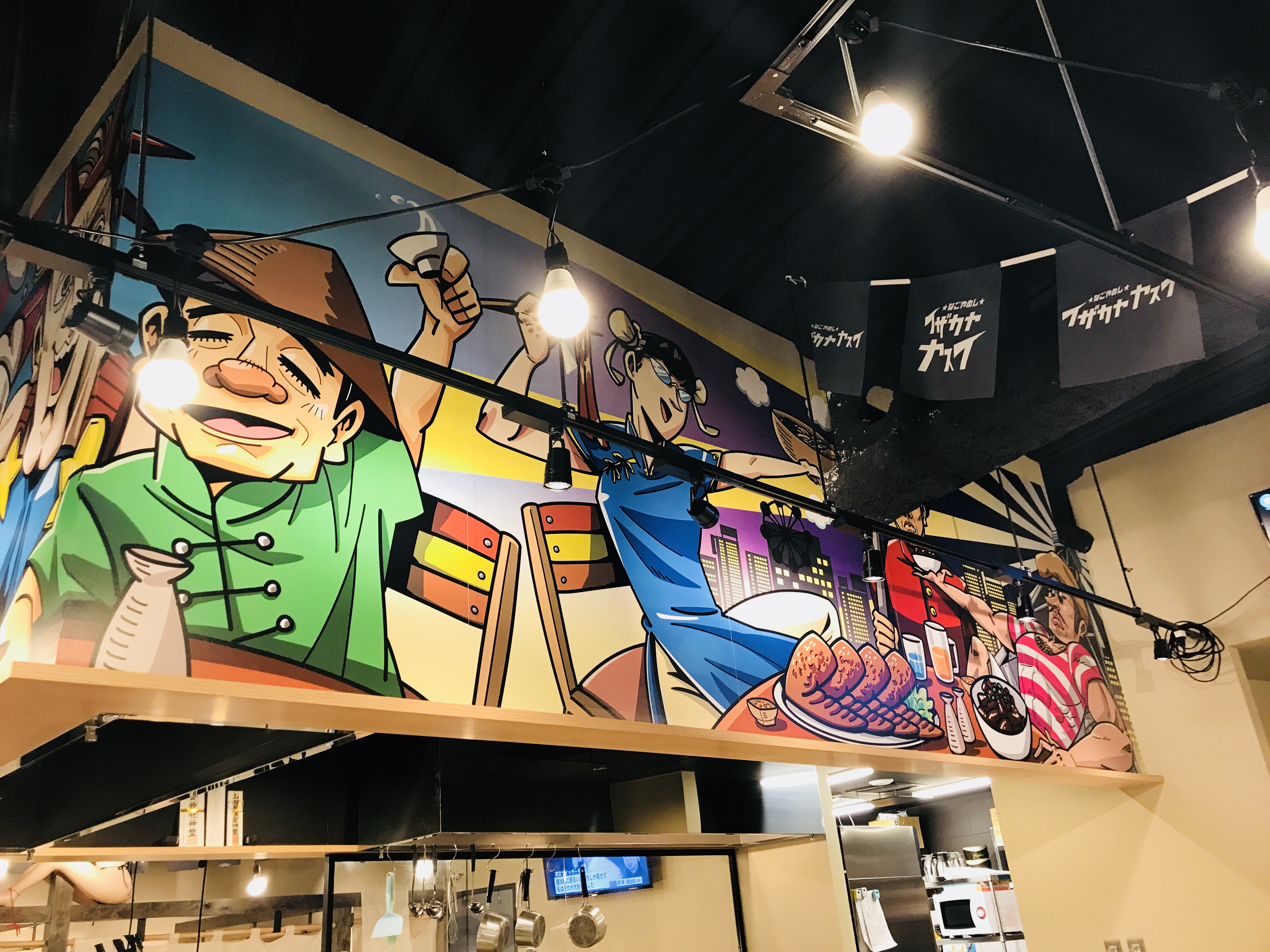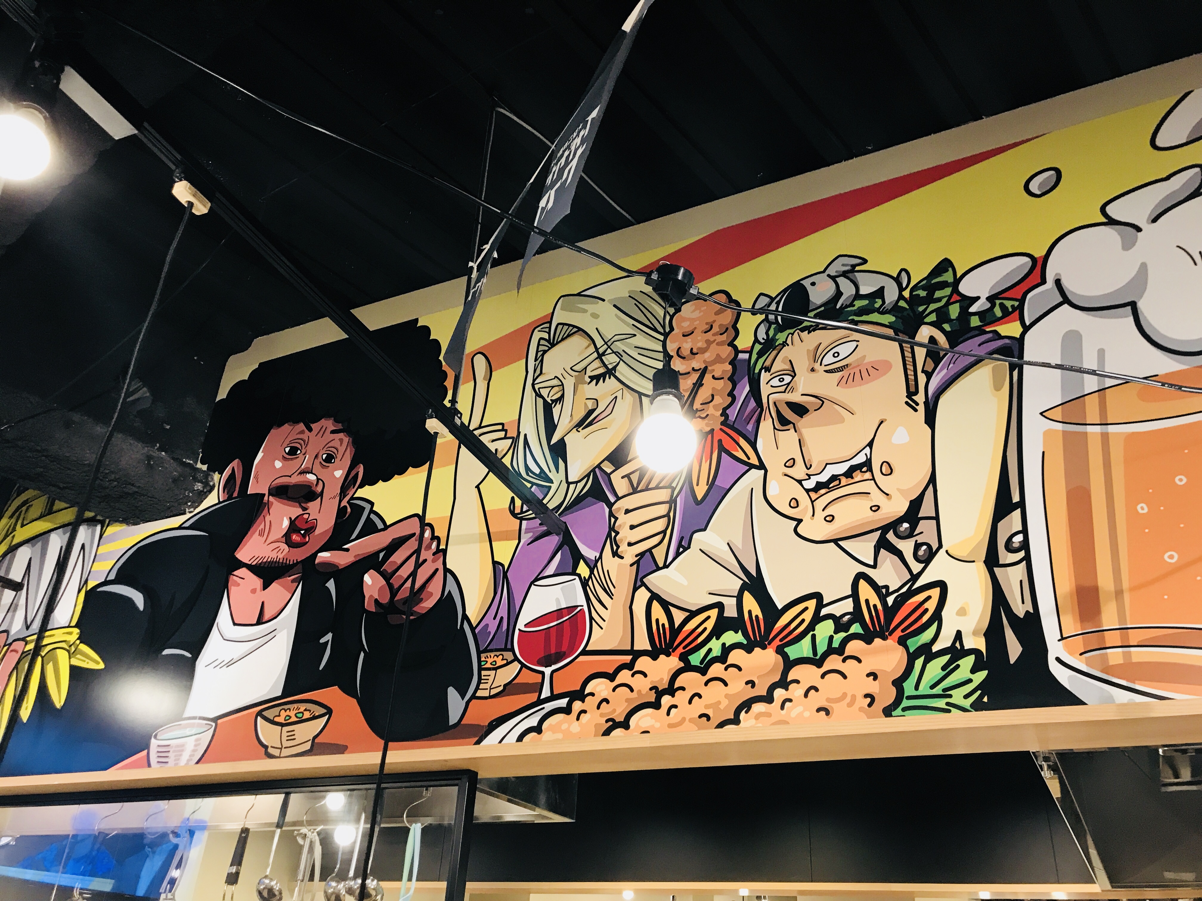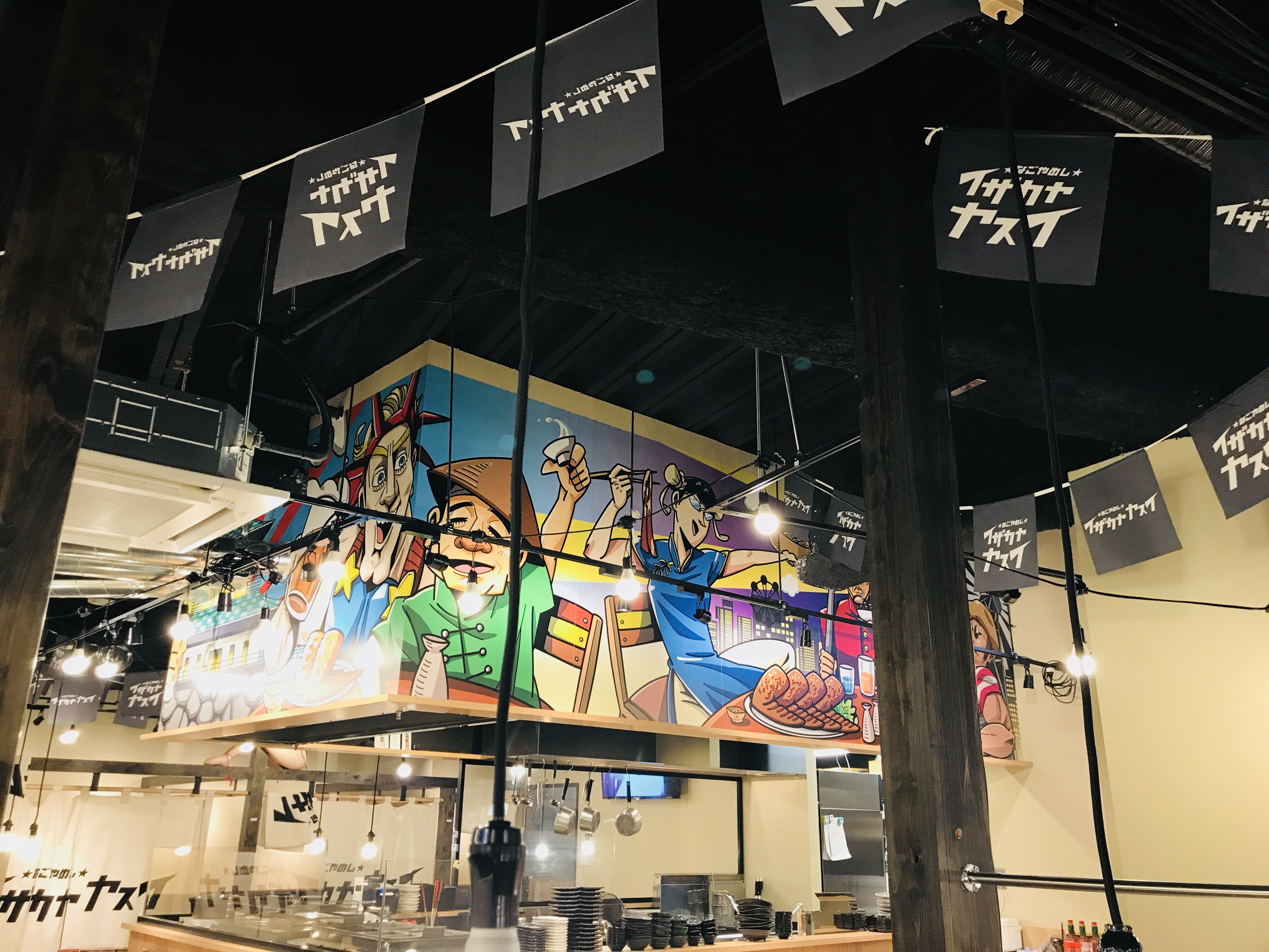 名古屋で生まれた人情居酒屋 「やぶやグループ」の新店舗 イザカヤヤスイ名駅本店の 店内壁画デザイン 各国の人種がビール片手に 名古屋めしで仲良くなるイメージで 制作しました。 「イザカヤヤスイ名駅本店」 愛知県名古屋市西区名駅3-10-15 〒451-0045 愛知県名古屋市西区名駅3-10-15