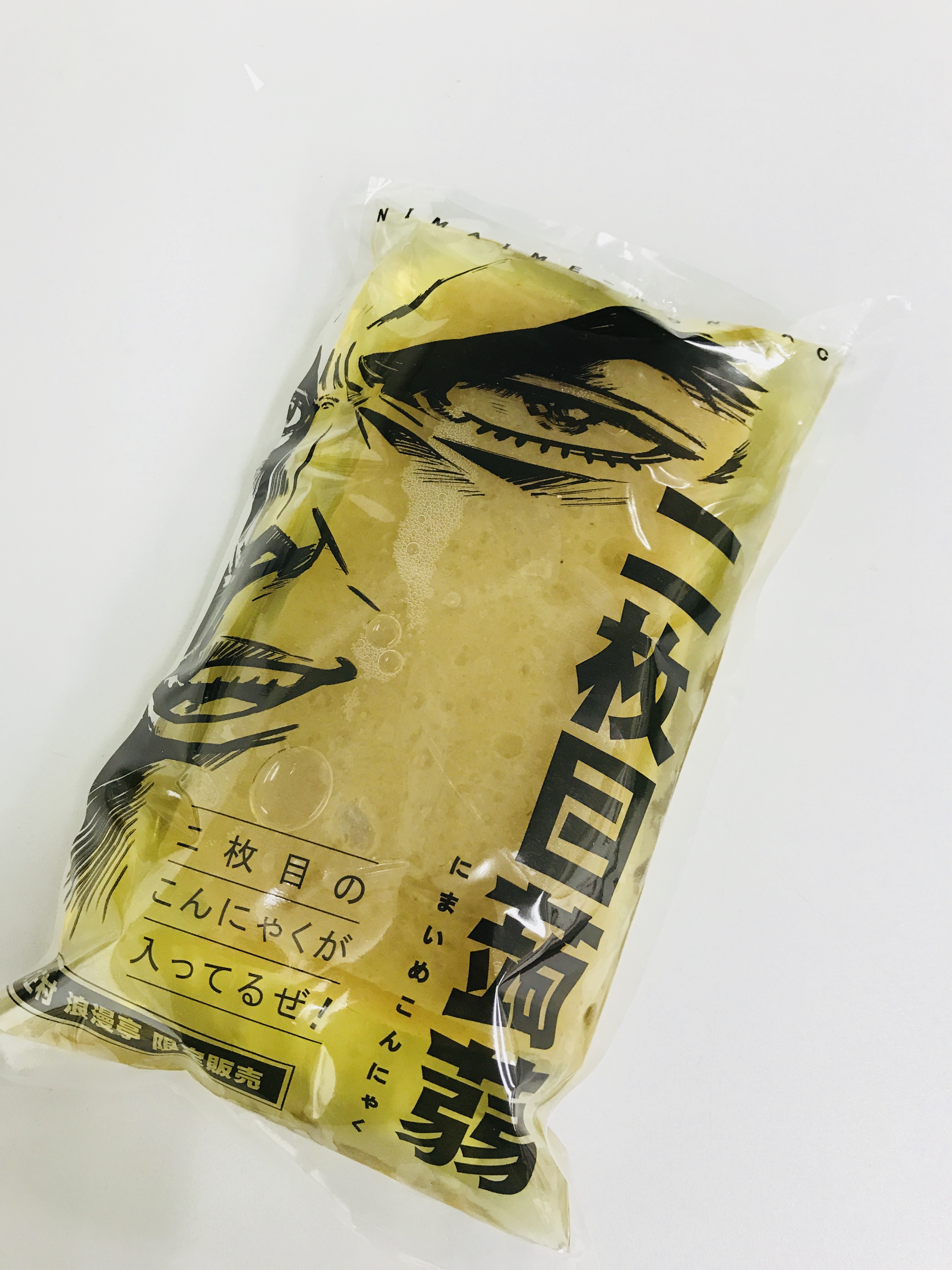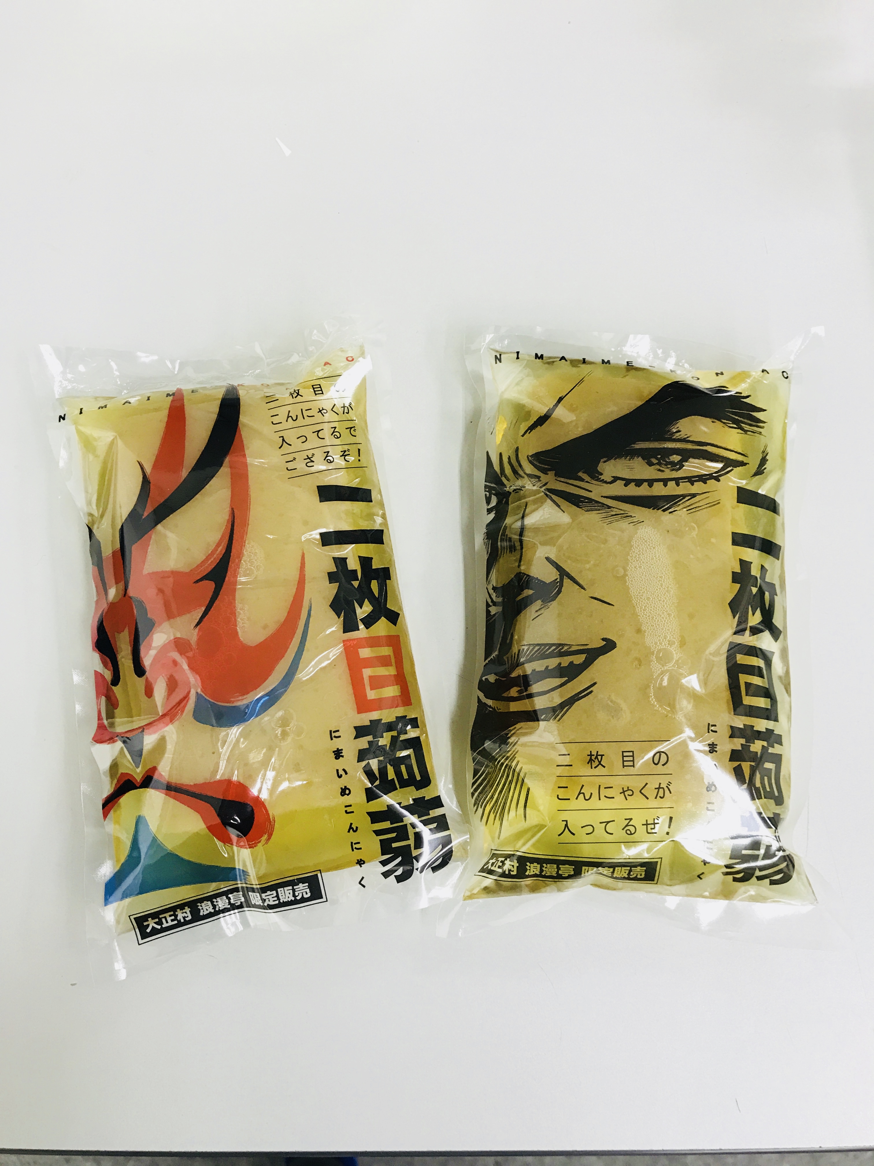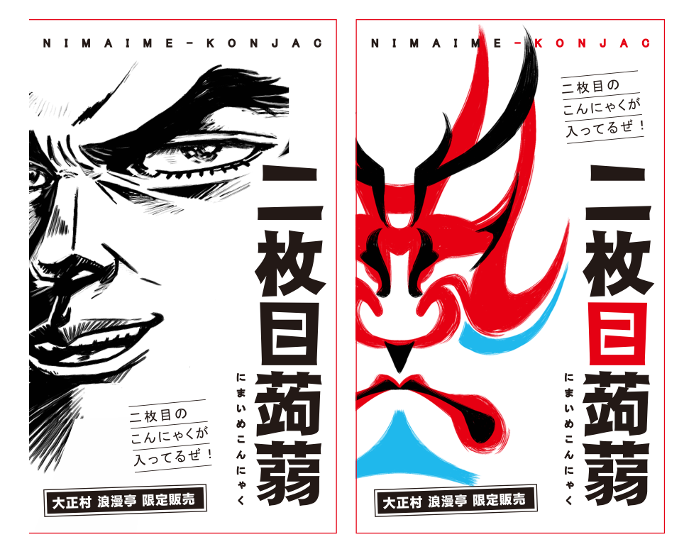 板こんにゃく2枚が入った オリジナル商品 「二枚目蒟蒻(こんにゃく)」の パッケージデザイン・イラストレーションを制作