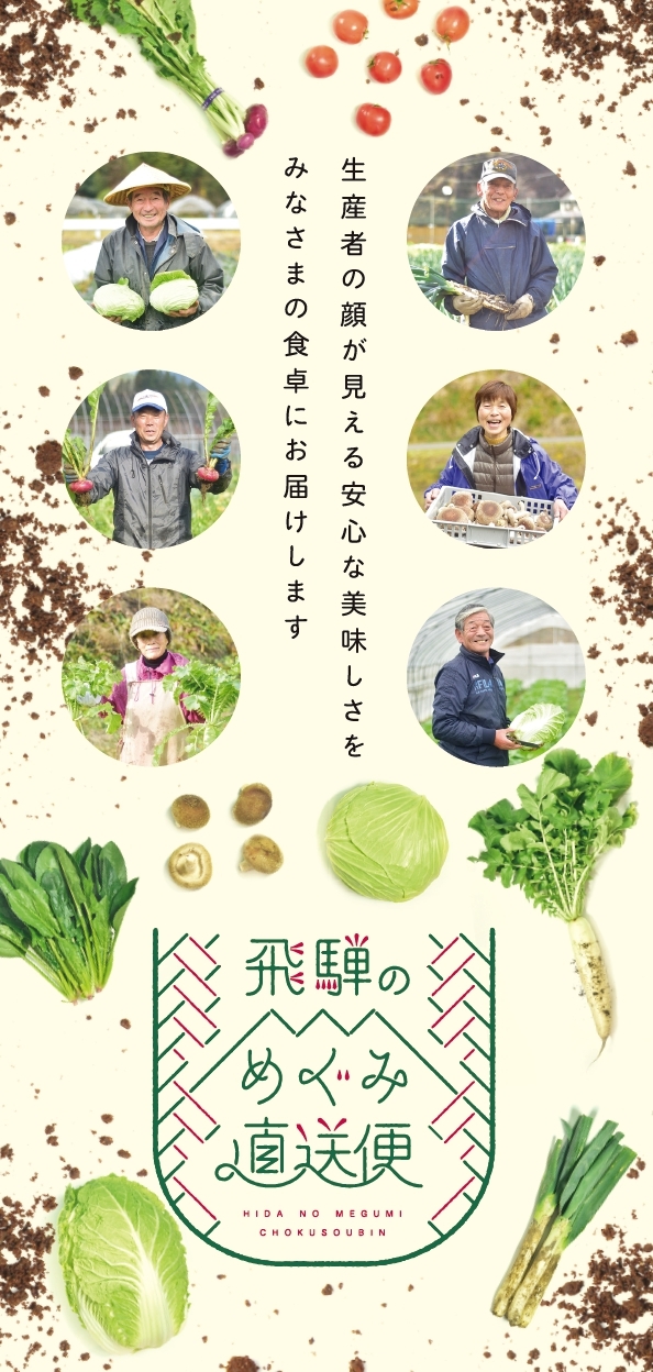 飛騨の特産物を販売する高山市の「特選館あじか」様の新規事業「飛騨のめぐみ直送便」のブランド作りのお手伝いさせていただきました。