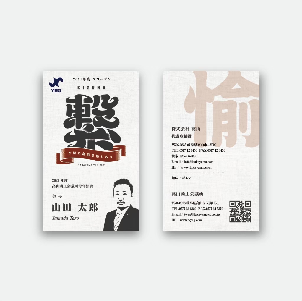 高山商工会議所青年部会「高山YEG」様のトータルブランディングを制作しました。 2021年度のスローガンを元にロゴマークを制作し、名刺を始め各種印刷物に展開いたしました。