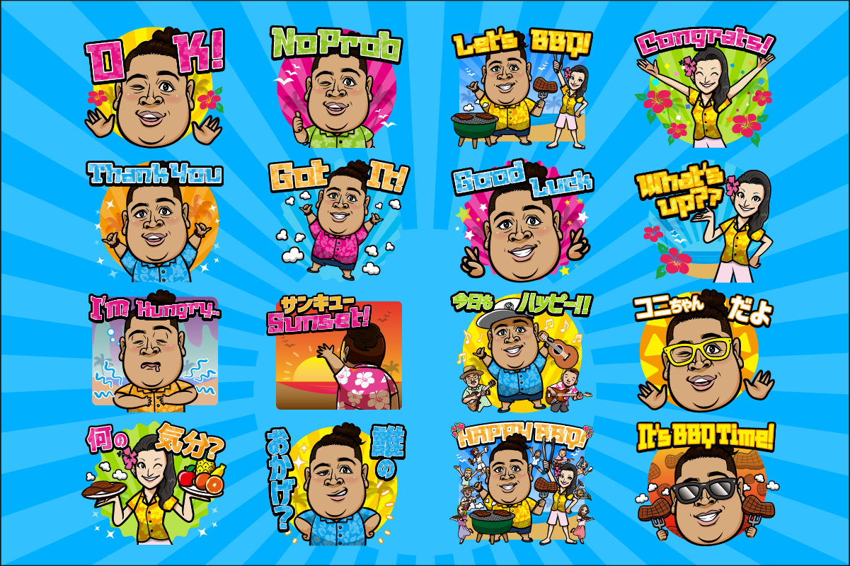 元大関でタレントのKONISHIKIことコニちゃんが最近ではBBQマスターとしても活躍中!ハワイ仕込みのオリジナルBBQソースも大好評!販売中!スタンプを使えば気分はHAPPY BBQ〜!