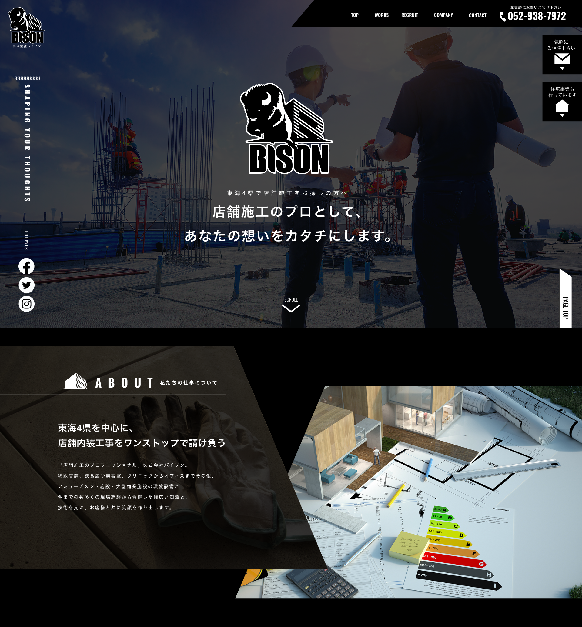 東海4県を中心に店舗の内装施工を手がける「バイソン」様のホームページデザインを制作させていただきました。