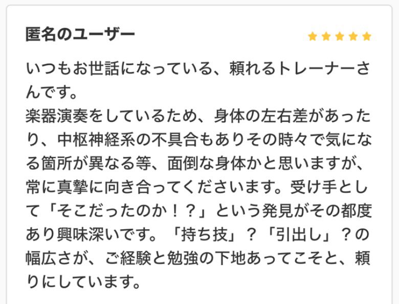 背骨ケアを受けているお客様から、レビューをいただいたのでご紹介させていただきます。